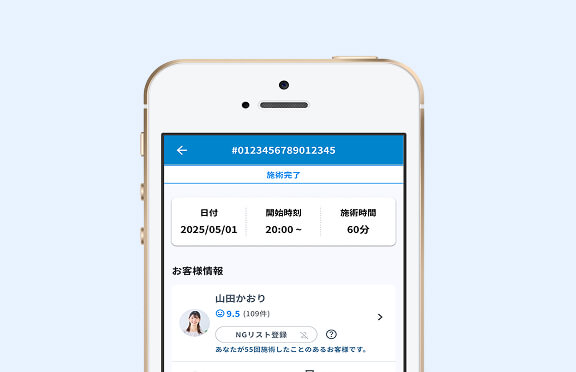 お客様のプロフィールやレビューを事前に確認してから施術を受けるか判断可能。納得できる条件で、安心してお仕事に臨めます。